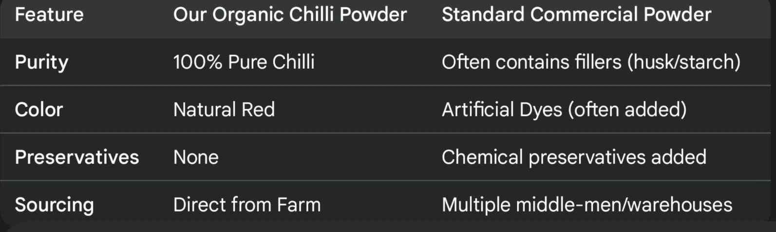 Zero Additives: Most commercial powders use fillers. Ours is pure chilli, through and through.
